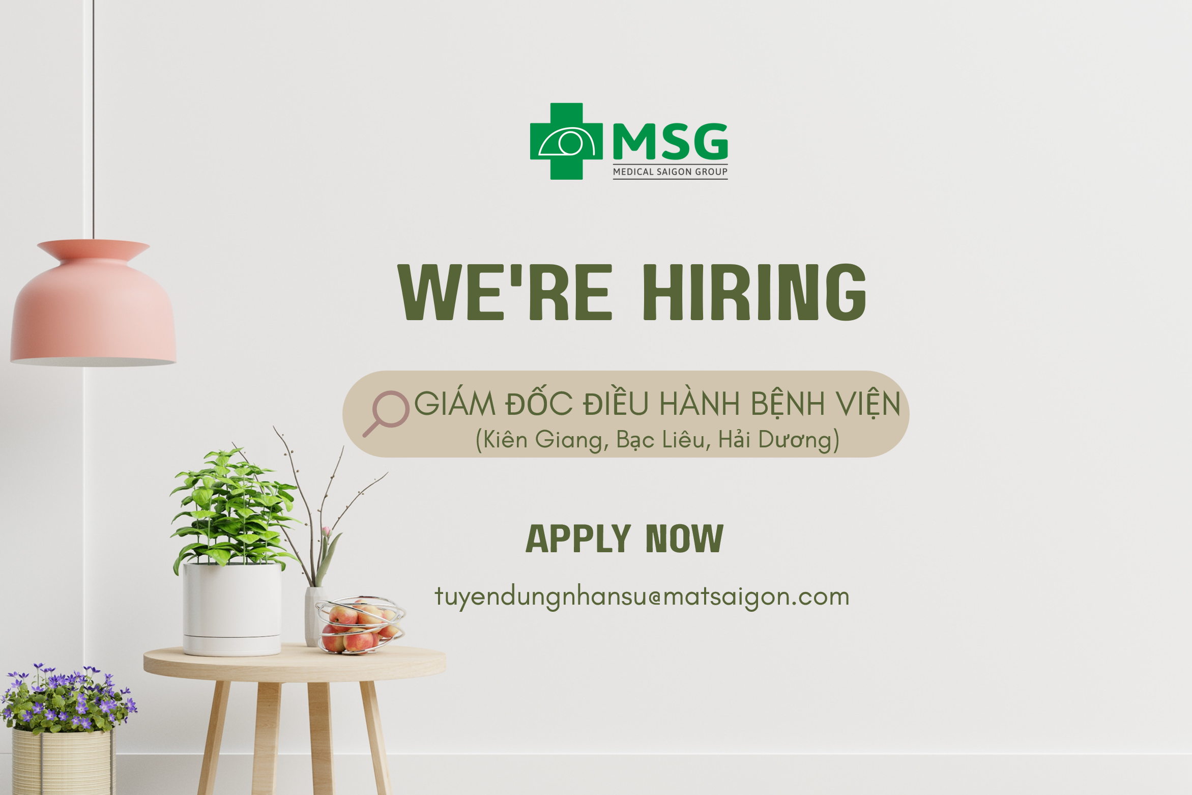 - Tốt nghiệp Đại học các chuyên ngành về Quản trị Kinh doanh hoặc Quản trị bệnh viện hoặc Bác sĩ CK1 trở lên